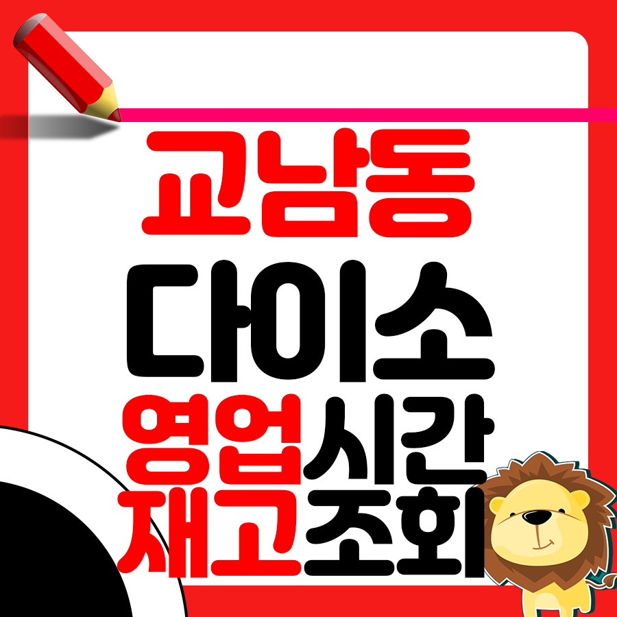 교남동에 위치한 다이소의 영업시간, 오픈시간, 종료시간과 재고조회 방법에 대한 상세 정보를 알려드립니다. 합리적인 가격으로 다양한 생활용품을 구매할 수 있는 다이소 교남동점을 방문하기 전 알아두면 좋은 정보들을 한눈에 확인하실 수 있습니다.